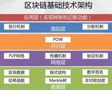 比特币与区块链技术一同出现,并且为区块链确立了技术框架。一般来说,一个区块链项目由数据层、网络层、共识层、激励层和应用层组成(见下图)。
