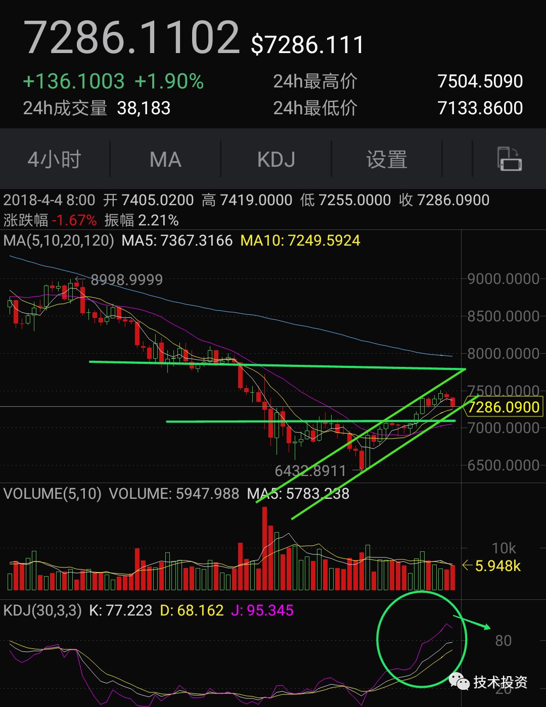 今天猜想:BTC,现价7292(12:36),回调7150,接着反弹7400,最后7000-7400震荡。最低6950,最高7500。等待明日猜想。